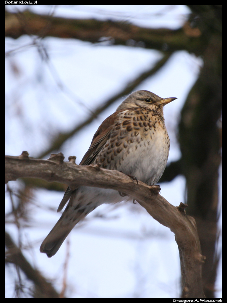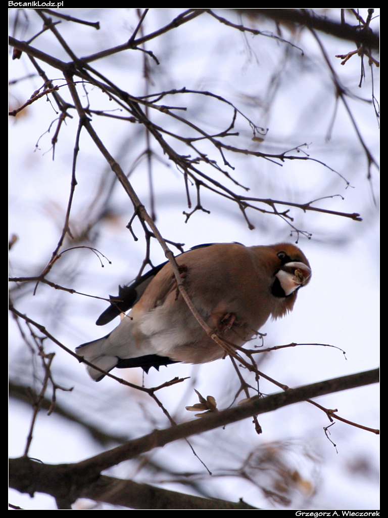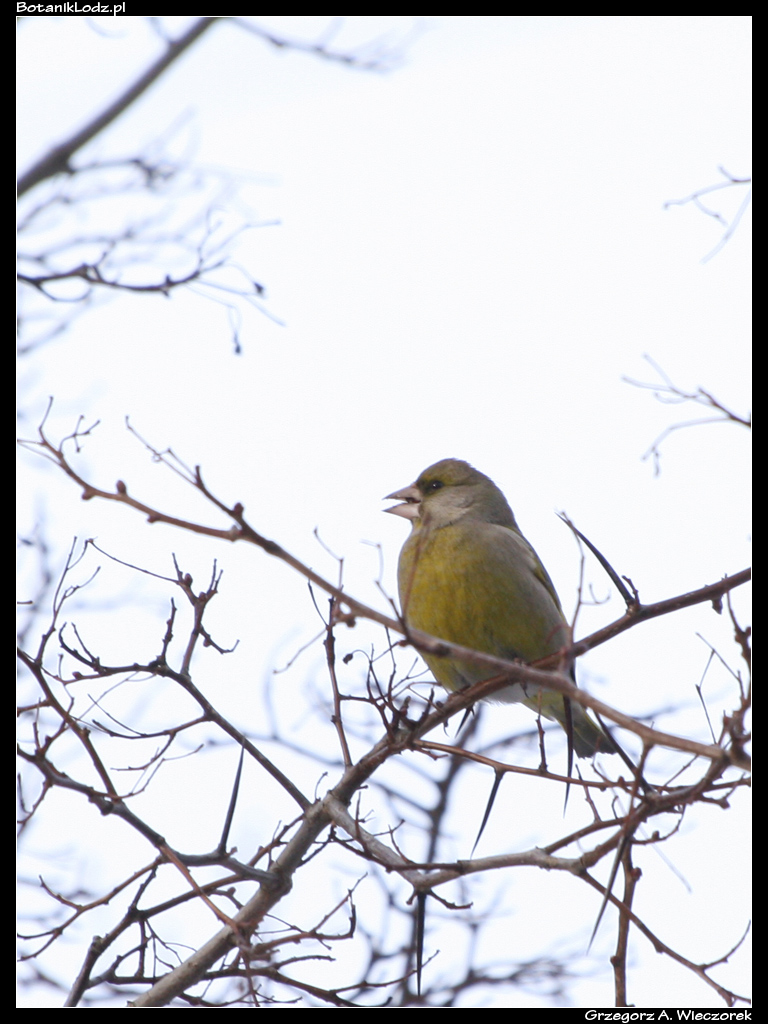 Pisząc o czapli zacząłem szukać w archiwum jej zdjęcia i doszedłem do wniosku, że może znajdę jeszcze inne foty ptaków z dawnych lat, żeby mieć czym zilustrować ten wpis. Zacząłem szukać i… wsiąkłem na kilka godzin. Ze zdumieniem zauważyłem, że jakieś 15 lat temu fotografowałem zimą całkiem sporo ptactwa. Lato było dla owadów, zima dla ptaków. Teraz zima jest dla nikogo, bo nie chce mi się wyjść z domu. Szukałem w archiwach, a jak już coś znalazłem, to oczywiście musiałem to wyedytować, pobawić się ustawieniami, poeksperymentować. Czas sobie płynął, każdy kto zajmuje się programami graficznymi wie jak to jest. Późnym wieczorem miałem pokaźną pulę zdjęć. Część z nich jest całkiem ładna, większość ma wartość jedynie dokumentacyjną, bo chciałem wyciągnąć jak najwięcej różnych gatunków. Pominąłem kaczki, łyski i inne ptaki wodne, pominąłem krukowate, bo gawron, jaki jest, każdy widzi. Przeglądając to, co zostało, sam się zdziwiłem – w Ogrodzie Botanicznym w Łodzi można spotkać naprawdę dużo gatunków! Zabawne jest to, że podczas spaceru ornitologicznego śmialiśmy się z Włodkiem, kiedy prowadzący opowiadał o dzwońcach. My nigdy dzwońca (Chloris chloris) nie widzieliśmy. Tymczasem okazało się, że nie tylko widziałem dzwońce, ale nawet zrobiłem im dawno temu zdjęcia!