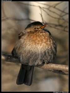 Kolejna, licznie reprezentowana rodzina ptasich mieszkańców Ogrodu, to drozdowate (Turdidae). Należą do niej między innymi kos (Turdus merula) i kwiczoł (Turdus pilaris). Te dwa gatunki spotykane są powszechnie w każdym sezonie. Pewnie czasem trafiają się i inne drozdy, ale ja z całą pewnością nie potrafię ich zidentyfikować. Drozdowate są jedną z moich ulubionych, ptasich rodzin. Po pierwsze – pięknie śpiewają. Po drugie – mają w sobie tę nutę zawadiackości, kojarzącą się z moimi ulubionymi srokami. Kosy czy kwiczoły często można obserwować podczas żerowania wśród zeszłorocznych liści. Żwawo skaczą, rozgarniają uschnięte rośliny, rozrzucają dookoła ich fragmenty. W ogóle nie boją się ludzi. Jeżeli podejdzie się do nich powoli i stanie spokojnie, będą podchodzić na odległość kroku. Szczególnie dotyczy to osobników miejskich, związanych z parkami i przyzwyczajonych do człowieka.