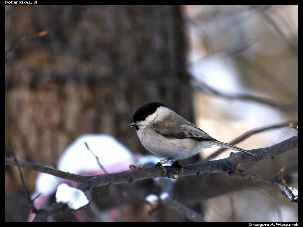 W Botaniku, podobnie jak i na pobliskich osiedlach, bardzo licznie występują sikory. Większości ludzi ptaki te kojarzą się z sympatycznymi, kolorowymi, puchatymi kulkami. Tak jednak nie jest. Jak opowiadali panowie prowadzący wycieczkę, te małe ptaszki są wysoce agresywne. Do tego stopnia, że schwytane do badań, muszą być umieszczane w oddzielnych woreczkach – inaczej zadziobałyby się na śmierć. Problem ten nie występuje z większością innych gatunków, które są w stanie tolerować się nawzajem. Najpopularniejsza jest sikora bogatka (Parus major) z charakterystycznym, żółtym brzuszkiem. Niewiele ustępuje jej popularnością sikora modraszka (Cyanistes caeruleus), którą można chyba nazwać najpiękniej ubarwionym gatunkiem. Sikora uboga (Poecile palustris) jest ze względu na swoje stonowane kolory rzadziej widoczna. Wreszcie podobna do niej nieco sikora czarnogłówka (Poecile montanus) – ptak, którego widziałem w Ogrodzie jedynie kilka razy. Pozostałych dwóch sikor występujących w Polsce – sikory czubatki (Lophophanes cristatus) i sikory sosnówki (Periparus ater) – nie miałem nigdy okazji spotkać.