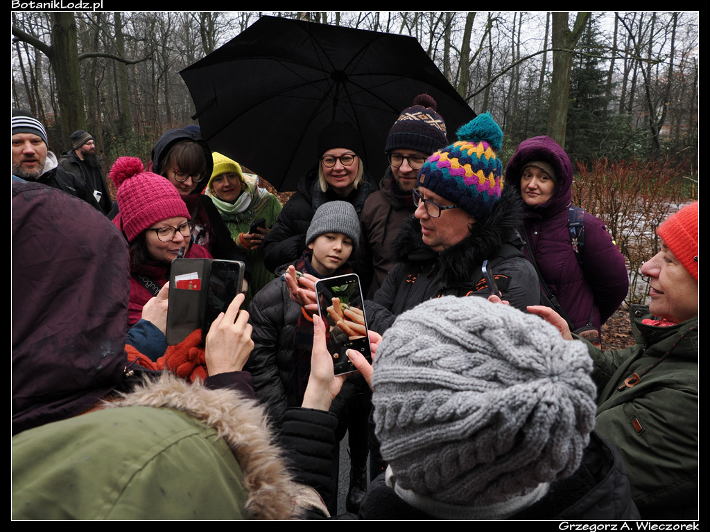 Chociaż deszcz siąpił prawie nieustannie i większość ptaków siedziała cicho pochowana między gałęziami, wycieczka była bardzo udana. Chodziliśmy ponad dwie godziny, przeszliśmy spory obszar Botanika, po drodze wysłuchując wielu ciekawych faktów o życiu jego pierzastych mieszkańców. A przy okazji mieliśmy szansę ponownie zobaczyć nasze ulubione zakątki. Jedyny przykry zgrzyt nastąpił kiedy szliśmy Aleją Lipową przy wejściu do Działu Roślin Leczniczych. Okazało się, że zostały wycięte rosnące tam od lat drzewa iglaste. Po co? Nie mam pojęcia, ale mam nadzieję, że miało to jakieś racjonalne uzasadnienie. I nie było to uzasadnienie w stulu – „bo zasłaniały widok i przeszkadzały podczas pikników”. Ptasie tematy zainteresowały mnie, mam nadzieję, że w tym sezonie poświęcę im więcej czasu i uwagi. Na kolejną wycieczkę ornitologiczną wybiorę się z dużą chęcią. Natomiast do samego Ogrodu będzie można wejść już w marcu – podczas kolejnej wycieczki dotyczącej przebudzenia wiosny (o ile się przebudzi w tym roku).