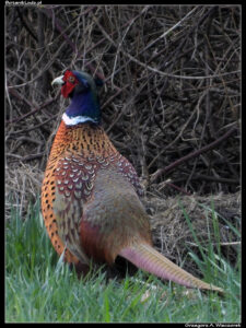 Zachwycony możliwością ponownego spotkania z tym starym przyjacielem spacerowałem ponad trzy godziny. W tym czasie zdążyłem obejść wszystkie ulubione miejsca wyglądające jeszcze pustawo po minionej zimie. Zaliczyłem stawy, laski, górki oraz oczywiście domki dla owadów. Po drodze spotkałem sporo innych zwiedzających, w tym kilku znajomych. Wszystkich nas łączyło uczucie wielkiej radości, że znów możemy się tu spotkać. Każdy snuł plany co spotka i sfotografuje w nadchodzącym sezonie. Wracając jednak do przyrodniczego sedna – oprócz kwiatów i owadów w oczy rzucały się także ptaki. Udało mi się spotkać dwa ciekawe gatunki. Pierwszym z nich był bażant zwyczajny (Phasianus colchicus), który nie jest szczególnie rzadki w Botaniku, ale w czasie cieplejszych miesięcy siedzi ukryty w krzakach i można go tylko usłyszeć. Wczesną wiosną, kiedy nie ma jeszcze liści, widać go z dużej odległości. Trudno go podejść, bo jest niezwykle nieufny, no chyba że ma się obiektyw 3000mm. Nawet wtedy nie jest to trywialne, ptaszysko przeważnie chowa się w trawie i szybko porusza. Podobne problemy sprawia przepiękny dzięcioł zielony (Picus viridis), również popularny w Botaniku. Poza ubarwieniem o niezwykłej barwie, ten sympatyczny ptak charakteryzuje się jeszcze jedną ciekawą cechą. W odróżnieniu od większości innych gatunków dzięciołów, ten często przebywa na ziemi. Ma w Ogrodzie kilka ulubionych rejonów, w których szuka pokarmu wśród traw albo biega po alejkach. Bardzo często dzięcioły zielone poruszają się w większej grupie i jest to naprawdę niezwykły widok. Ponieważ, jak napisałem wcześniej, te ptaki siedzą głównie na ziemi, ja sfotografowałem go na drzewie.