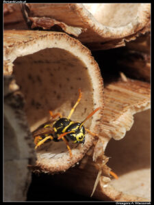 Owadów nie było na razie zbyt wiele. Obudziły się już klecanki i powoli zaczęły krzątać się wokół miejsc gniazdowania, czyli głównie na domkach dla owadów. Ich powierzchnia dobrze chłonie promienie słoneczne i szybko się nagrzewa, nagrzewają się na niej również siedzące owady. W okolicach domków latało już trochę innych błonkówek – głównie niezawodne trzmiele i pszczoły – trochę much i wiosenne gatunki motyli, czyli cytrynki i rusałki. A na ziemi dominowały, jak zawsze wczesną wiosną, kowale bezskrzydłe. Nie jest to może dużo, ale podczas pierwszej wizyty w sezonie nikt nie spodziewa się spotkania nowych gatunków, ani jakichś niezwykłych wydarzeń. Ta wizyta to jak odwiedziny u starego przyjaciela, z którym człowiek tylko wymienia uścisk dłoni, wiedząc że w kolejnych tygodniach i miesiącach spotkają się jeszcze nie raz.
