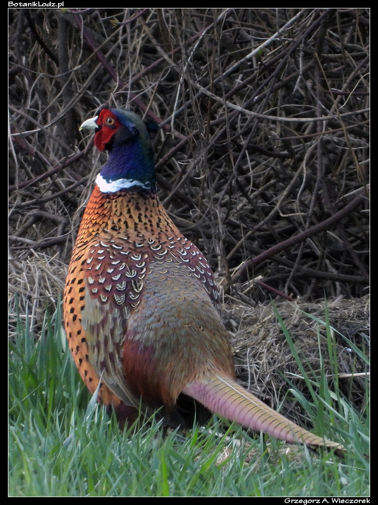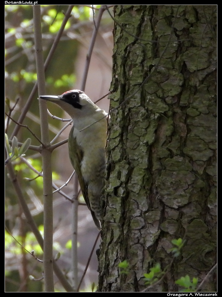 Zachwycony możliwością ponownego spotkania z tym starym przyjacielem spacerowałem ponad trzy godziny. W tym czasie zdążyłem obejść wszystkie ulubione miejsca wyglądające jeszcze pustawo po minionej zimie. Zaliczyłem stawy, laski, górki oraz oczywiście domki dla owadów. Po drodze spotkałem sporo innych zwiedzających, w tym kilku znajomych. Wszystkich nas łączyło uczucie wielkiej radości, że znów możemy się tu spotkać. Każdy snuł plany co spotka i sfotografuje w nadchodzącym sezonie. Wracając jednak do przyrodniczego sedna – oprócz kwiatów i owadów w oczy rzucały się także ptaki. Udało mi się spotkać dwa ciekawe gatunki. Pierwszym z nich był bażant zwyczajny (Phasianus colchicus), który nie jest szczególnie rzadki w Botaniku, ale w czasie cieplejszych miesięcy siedzi ukryty w krzakach i można go tylko usłyszeć. Wczesną wiosną, kiedy nie ma jeszcze liści, widać go z dużej odległości. Trudno go podejść, bo jest niezwykle nieufny, no chyba że ma się obiektyw 3000mm. Nawet wtedy nie jest to trywialne, ptaszysko przeważnie chowa się w trawie i szybko porusza. Podobne problemy sprawia przepiękny dzięcioł zielony (Picus viridis), również popularny w Botaniku. Poza ubarwieniem o niezwykłej barwie, ten sympatyczny ptak charakteryzuje się jeszcze jedną ciekawą cechą. W odróżnieniu od większości innych gatunków dzięciołów, ten często przebywa na ziemi. Ma w Ogrodzie kilka ulubionych rejonów, w których szuka pokarmu wśród traw albo biega po alejkach. Bardzo często dzięcioły zielone poruszają się w większej grupie i jest to naprawdę niezwykły widok. Ponieważ, jak napisałem wcześniej, te ptaki siedzą głównie na ziemi, ja sfotografowałem go na drzewie.
