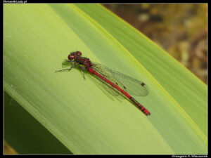 Zacznijmy od ważek, które są jednymi z moich ulubionych owadów. O tej porze roku zazwyczaj nad każdym stawem można spotkać ich setki, a Ogród naprawdę obfituje w ich liczne gatunki. Niestety, nie w tym sezonie. Wczodząc do Ogrodu od strony Retkini, zawsze skręcam w lewo i mijam pokaźny kompleks stawów położonych wśród rozległych łąk. Porastają je trzciny i inne wodne roślin, na brzegach pełno jest roślinności, wśród której buszują owady. Jednym słowem – prawdziwy raj dla ważek. Tymczasem w tym roku nie widziałem w tej okolicy ani jednego osobnika! Tak źle chyba jeszcze nigdy nie było. Nieco lepiej sytuacja wygląda na mniejszych zbiornikach wodnych w laskach bukowych. Tam udało mi się spotkać kilka razy łunicę czerwoną (Pyrrhosoma nymphula), pięknie ubarwiony gatunek, który widuję raz na kilka lat. Ważki te do tej pory widywałem na jednym ze stawów w Ogrodzie Japońskim, jednak ich okres występowania był na tyle krótki, że często – z powodu pogody czy braku czasu – nie widziałem ich w danym roku wcale. Tym razem łunice dopisały, są widoczne przez dłuższy czas i w innych miejscach. Udało mi się spotkać zarówno samce, jak i samice. Nie było ich dużo, ale kilkanaście osobników latających jednocześnie to i tak w tym kiepskim sezonie doskonały wynik.