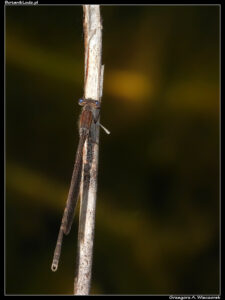 Kolejną mniej typową ważką jest straszka pospolita (Sympecma fusca). To gatunek powszechnie występujący w Ogrodzie, spotykany w różnych miejscach i dużej liczbie. Jego charakterystyczną cechą jest zimowa hibernacja – straszki są w stanie przeczekać niekorzystną porę roku, a wiosną pojawiają się nad stawami jako pierwsze. W sieci można też znaleźć ich niesamowite zdjęcia, na których siedzą na trzcinie, całe pokryte kryształkami lodu. Często zdarza się tak, że zanim Ogród zostanie na dobre otwarty, ważki te znikną już w coraz bujniej rozwijającej się roślinności. Ich brązowe ubarwienie jest przystosowane do wtapiania się w nadwodne tło złożone z suchych roślin i trzcin, dzięki czemu późną wiosną bardzo trudno jest je wypatrzeć. Tymczasem w tym roku większość botanikowych stawów została dokładnie ogolona z trzciny, nowe rośliny jeszcze się nie pojawiły z powodu ciągłego zimna i dzięki temu straszki są nadal widoczne. Spotykałem je przy każdej dotychczasowej wizycie i jak na razie to one stanowią najliczniejszą grupę tych drapieżników.